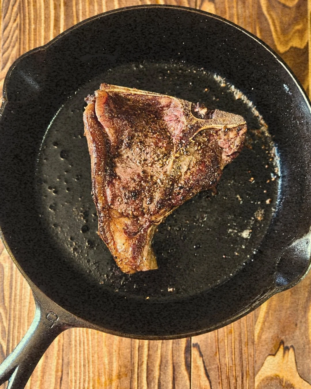 Once sear/crust has formed, flip the steak and follow the same process for the other side.